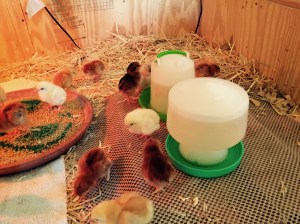 I think the most exciting thing that happened was that the newest set of baby chickens came! There are 30 in all- they are supposed to be all hens so Sues calling this batch “the layers”. There are four different types, I believe, and then the hatchery threw in 2 extras, one of which is a “fancy”. Right now they are all little balls of fluff. Too cute! I’ll write more about the varieties later- give you the lowdown, so to speak.