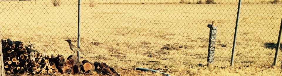Cool Sighting: When Sue first moved here, there was a Road Runner that she saw often, but we hadn’t had a visit in a long while. Yesterday afternoon, when she went over to feed the goat boys, there was a Road Runner poking around the wood pile at the dinky house. Can you make it out? Pretty cool that he/she is back.