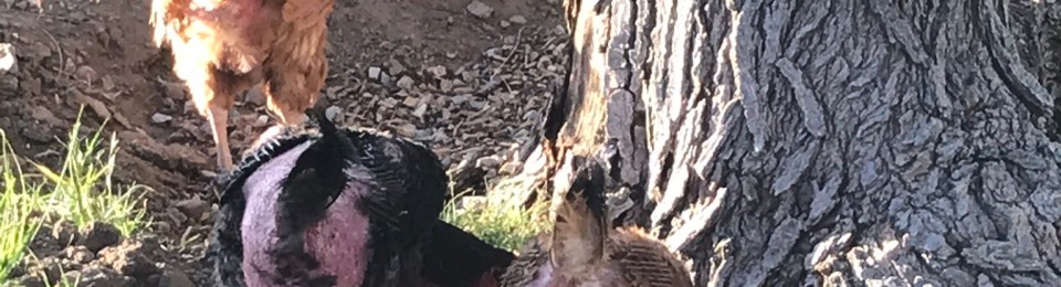went over to check on the newest arrivals. Dustin had reported that one of the chickens was really agitated by it’s leg band, it looked like it was too tight. Since we don’t really need them for identification, we went ahead and took them off. We also sprayed their little back sides with Vetricyn, animal skin care, to help their skin as it recovers from the nakedness. We did see some signs of feather regrowth – so hopefully in a couple of weeks we can show you some before and after comparisons. The photo above wast taken this last Sunday Morning so I could show the former owners that the girls were out and about and happy.