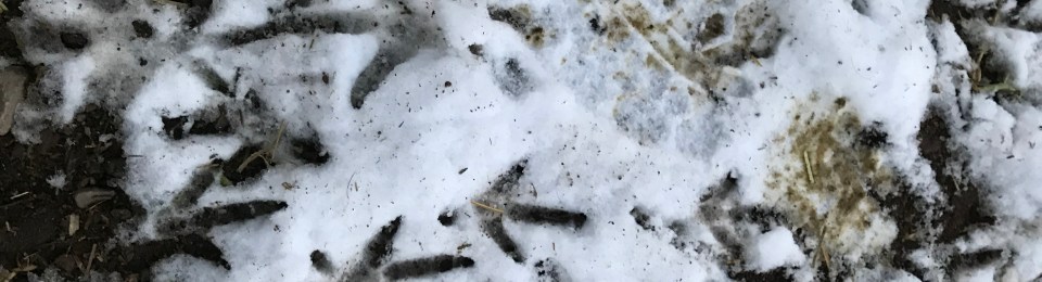 She has dropped her blanket of white over the hills and left her fleece behind in the draws where the sun never quite shows his face. Spent pomegranates hang from the trees like so many forgotten Christmas ornaments. The little dinos leave their tracks behind in the snow where only perspective can show how large or small the threat may be. Winter has come.