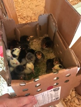 Right now, they are all just too cute to worry about that. Look at all that fuzzy cuteness. Sue got the call right after breakfast this morning, hopped in the truck and returned a short while later with a box full of happiness. You can’t help but smile when you see all of those babies and hear them cheep-cheeping away. They all made it through the days of US Postal delivery, so now we hope to get them through the first week without pasty butt. One of the things that gives them pasty butt is being too cold. Luckily, in the summer this isn’t a huge problem in transit. Spring is a bit iffy. We try to keep them quite warm the first few days – give them options of different temperature zones – so they can decide what they need.