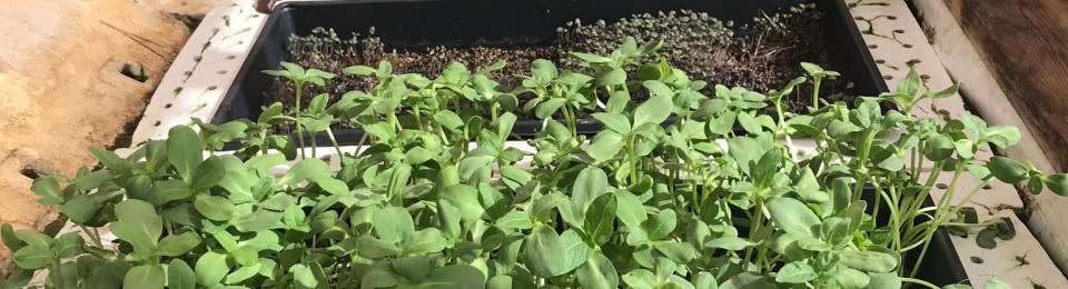 The vegetables, flowers, and microgreens they produce are wonderful! The micro greens that Shannon is holding in this photo are: sunflower green, and purple basils. These are not sprouts but a little bigger and the pack a huge flavor punch. They are wonderful added to salads or on sandwhiches. We had (home grown) roast beef sandwiches with the sunflower micro greens; amazingly delicious! You would not believe the flavor from those basil micro greens either… almost more flavorful than the full grown plants. I have also enjoyed the lettuce varieties that they have grown, so tender and juicy. This past spring, Shannon tried a variety of edible flowers – which were deliciously spicy. It’s so fun.