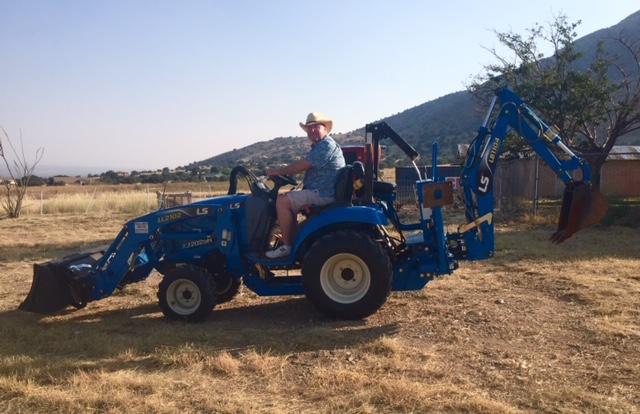 Right, no shopping for John because he wanted to come and drive around some big equipment… here he is man handling the Big Blue tractor. He feels that he’s a natural. (Photo Credit: Sue)