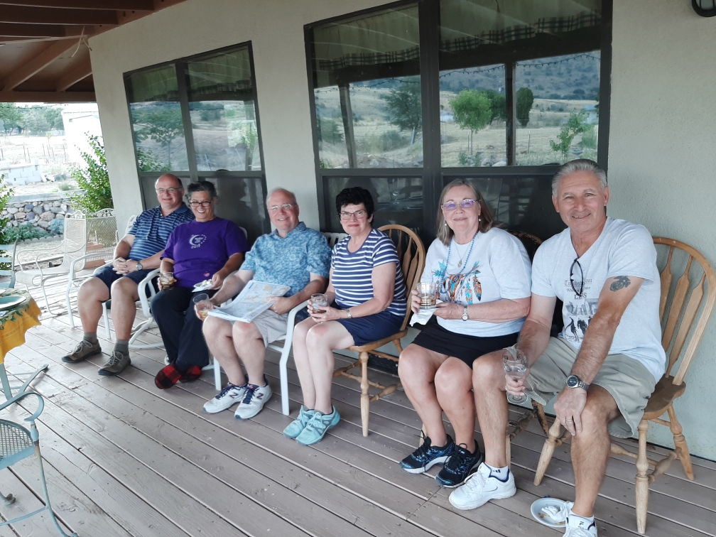 Everything ended with a delicious dinner on the veranda. Our dinner was a couple of roast chickens, with root veggies and potatoes. Dessert was the Peach and Blueberry quick sweet bread with a topping of brandied peaches. John finished everything off with a delightful Amaro. We wanted to thank everyone for the delightful visit. We hope they realized that there are a great many interesting and fun things to do here in Cochise County and that they’ll all be back soon.