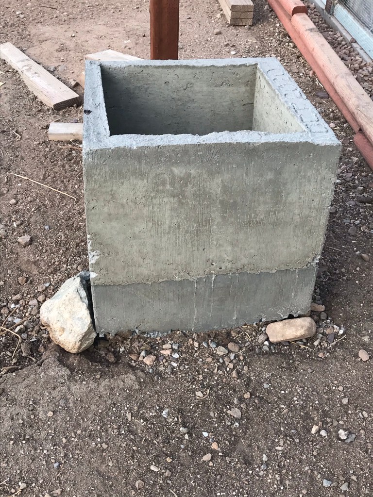 As you can probably tell, I’m pretty proud of this work! We did our best, it came out wonderfully. This photo is of the 2nd one we started. We’ve made some changes to see if we can eliminate the voids. We used 3 bags of concrete this time, so we’ll see if we end up with the color variance again. We wanted to finish it last weekend, but that was in the midst of our wind storm.