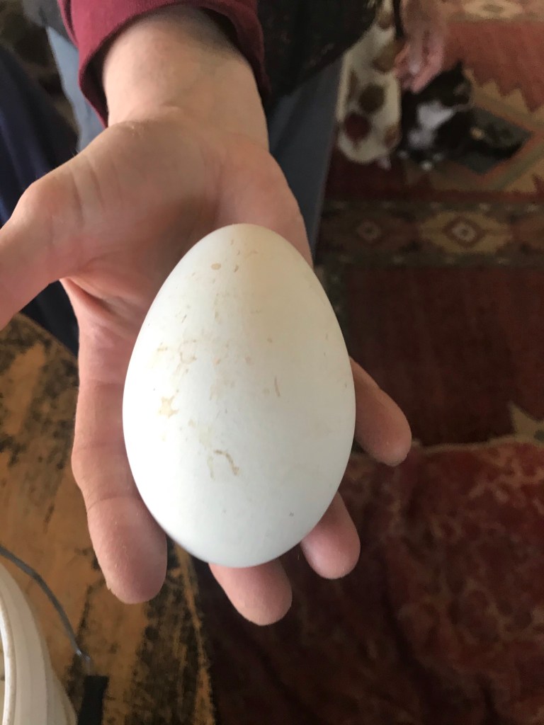 Of course, another sure sign of the season is our first goose egg! We were graced with this beauty today (Saturday). Last year, her first few eggs were double yolk eggs – we’ll see if the pattern holds. As far as egg production goes, we are really ramping up now. We have a few of our younger chickens just beginning to lay, the Buff Orpingtons are now almost 5 months old, so they should begin laying some time late April/early May. We are able to provide many eggs for our clients – even duck eggs just this last week. People are more and more consistently happy to hear from us.