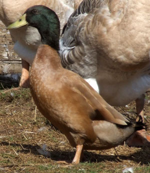 Sue wanted to try out the Pekings for butchering, but since only one little one survived, we’ll see if it is a little girl and keep her, or if it’s a nice little boy we could also keep him. The last of his kind from this little flock. The Khaki’s she wanted to try because they are on the Livestock Conservancy’s status as “watch” for heritage birds. That means they are not yet an endangered breed, but close. They are supposed to be prodigious layers and also one of the most quiet of the domestic duck breeds. Not that we really worry too much about quiet around here. Below are two photos of the adult birds. Left is the Peking and right is the Khaki Campbell. Nice looking, aren’t they?!