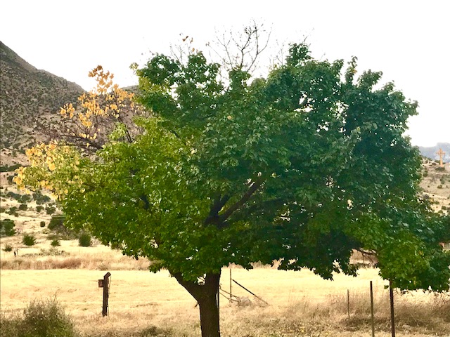 I really enjoy Fall. Not because of the pumpkin spice everything that invades our lives, not because of the pumpkin pancakes we enjoy in the morning, neither because the chickens, nor because it becomes amazing soup and sweater weather, but because of the changes in the plants and weather. Not that I like all the wind – never have. But I really enjoy the cooler temps. I especially relish watching the trees slowly change colors in their own little micro climates. I took a photo of this apricot tree to show you want I mean. Can you tell where the cooler winds blow down from up on the mountains?